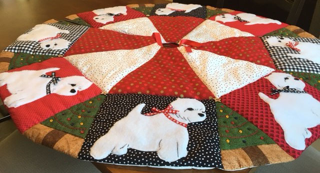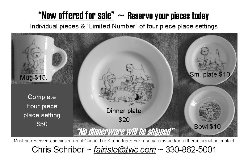 We are raffling off a Westie Christmas tree skirt as well as selling dishes. Details are below: