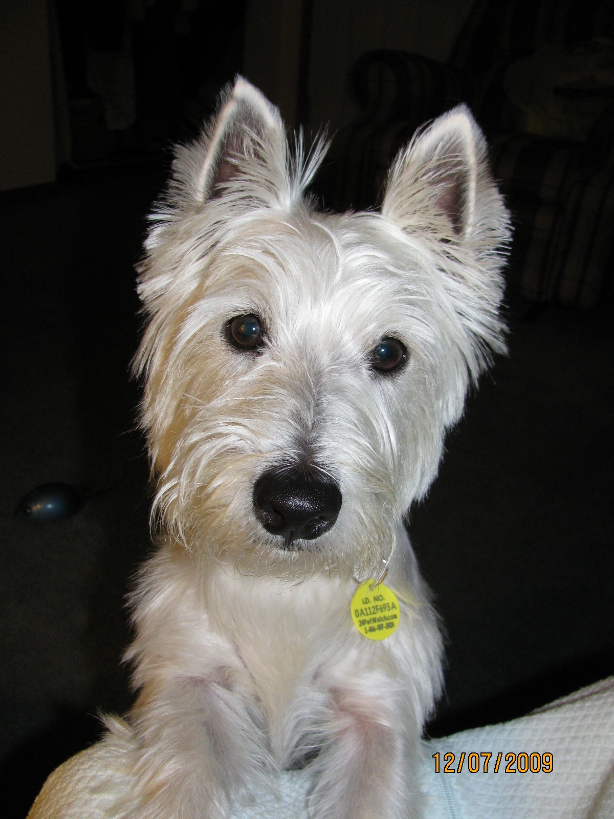 By Marsha SniderIn the early summer of 2009, WHTCNO received a call about a Westie found by a nice couple involved in cat rescue. They watched as the dog had almost been hit twice by a car. The skinny dog with a dirty and matted coat willingly went to the gentleman. They agreed to foster the dog and they called him Charlie. The adoptive parents quickly noticed a few things about Charlie. He liked a schedule and was a dog of routine. Although he was very friendly, he did not like anything touching his tail, and when stressed, he would spin in a circle and attack his tail. He wasn’t aggressive towards people, but if you got in the way of the spin behavior, chances were good that you might get bit! Holding him on your lap was scary because you never knew when he might go into the spin and bite behavior.